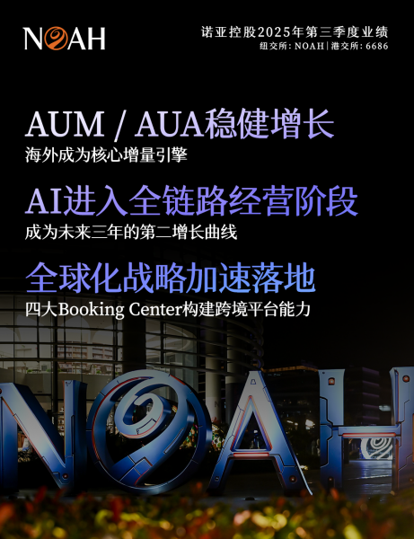 三季度,诺亚全球化战略再进一步。“四地 Booking Center”稳健布局——美国取得牌照、新加坡强化团队、中国香港与上海发挥枢纽作用。全球运营框架日益完善,为未来跨区域服务与资产配置奠定坚实基础。