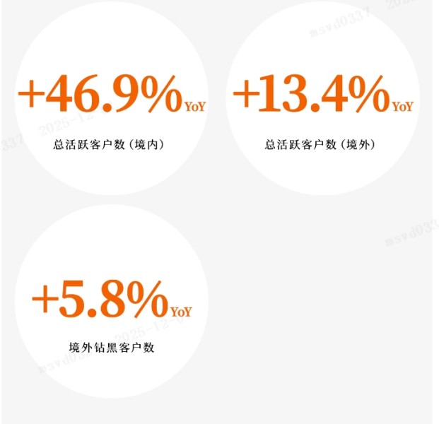 客户资产显著增加,这要归功于强劲的投资结果。截至三季度末,集团注册客户总数达466,153人,较去年同期增长1.3%,客户基础保持稳健。集团钻黑客户数达9,280人,其中,境外钻黑客户数1,647人,同比增长5.8%。活跃客户数在本季度表现尤为亮眼,达到10,650人,同比大幅提升35.5%。